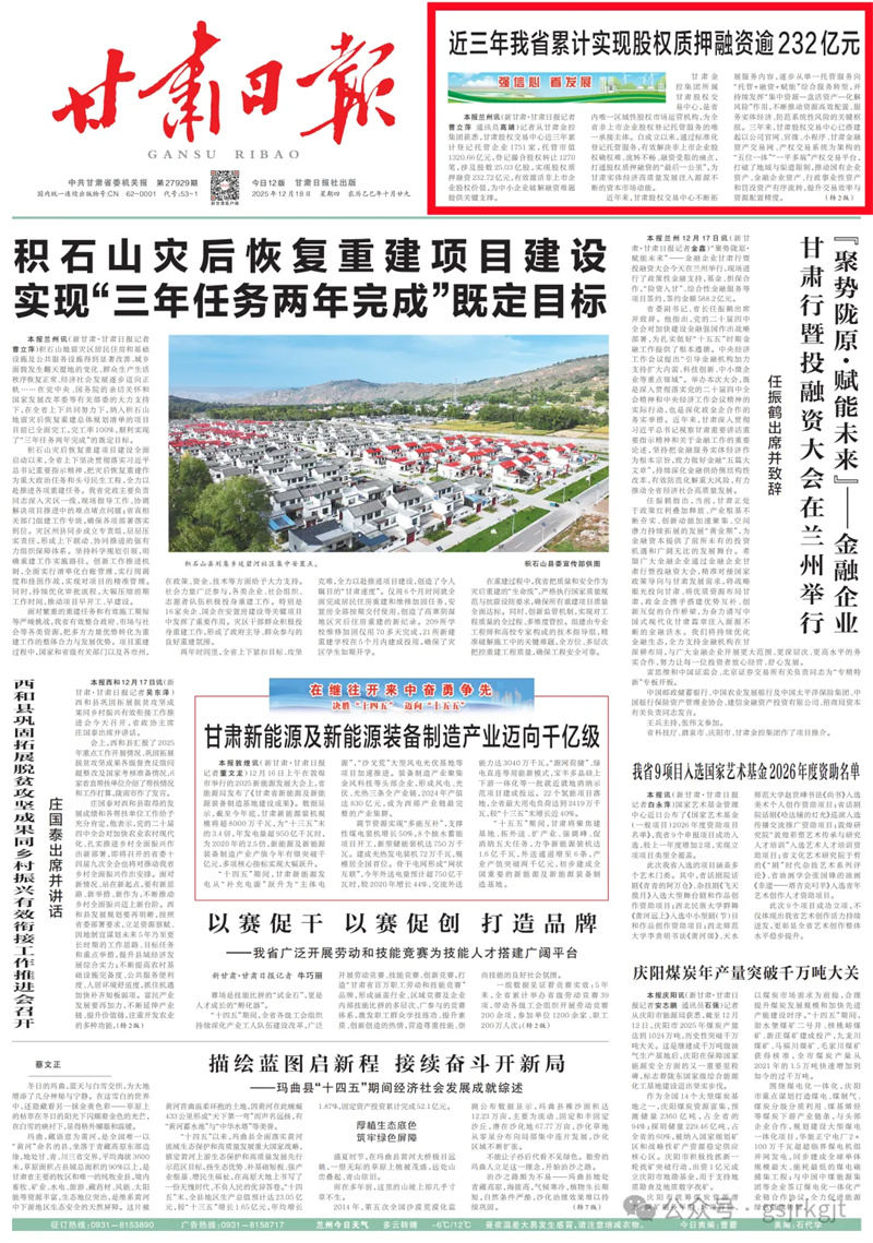 (新甘肃客户端兰州讯(新甘肃·甘肃日报记者曹立萍 通讯员高婧)记者从甘肃金控集团获悉,甘肃股权交易中心近三年累计登记托管企业1751家,托管市值1320.66亿元,登记撮合股权转让1270笔,涉及股数25.03亿股,实现股权质押融资232.72亿元,有效激活非上市企业股权价值,为中小企业破解融资难题提供关键支撑。