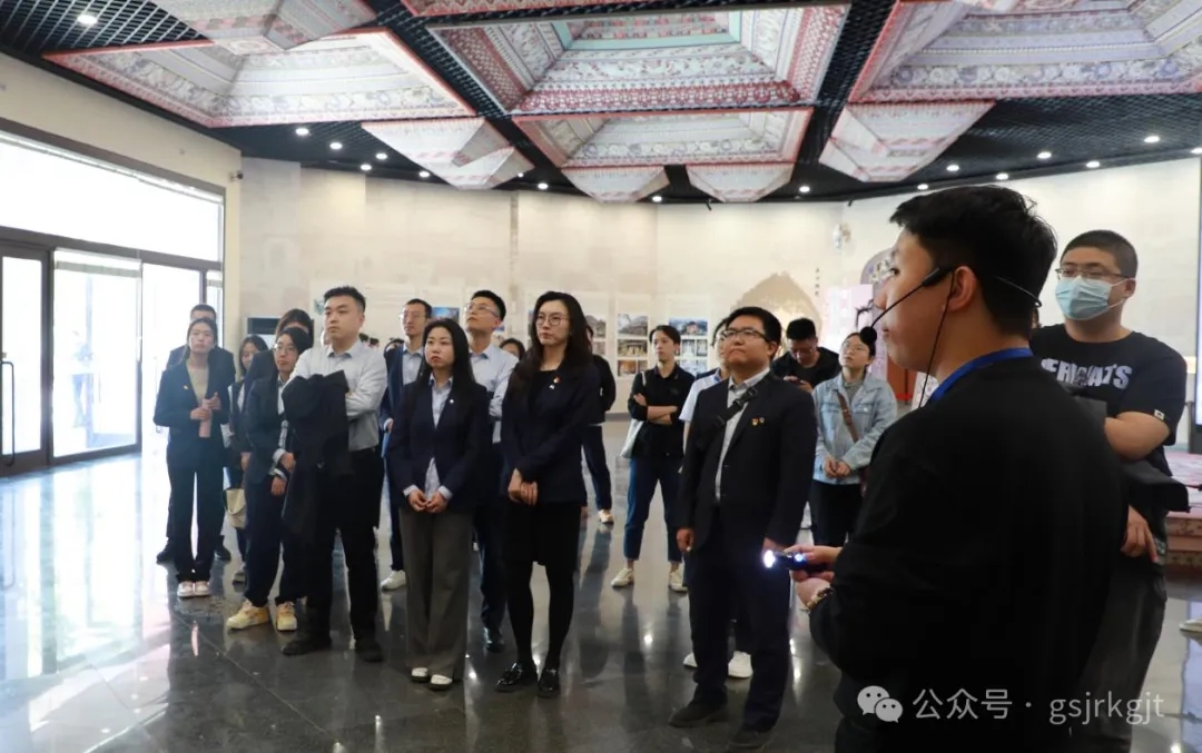 在敦煌艺术馆,青年员工们参观了复刻的洞窟、壁画和彩塑,认真聆听讲解员对莫高窟历史渊源和敦煌文化发展的介绍,不知不觉将自己带入了生动的历史故事中,仿佛此时此刻走进了鸣沙山东麓的断崖边,置身世界上现存规模最大、保存最完整的佛教艺术圣地,不停地探索735个洞窟和50000多件历史文物的奥秘,赞叹辉煌历史文化的奇迹,同时更为守护和传承这伟大的文化历史遗产而默默奉献的“莫高人”敬佩不已。